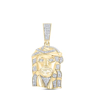 10K Yellow Gold Round Diamond Jesus Face Charm Pendant 0.50 Cttw