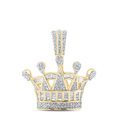 • 10K Yellow Gold Round Diamond Crown Nicoles Dream Collection Charm Pendant 0.88 Cttw