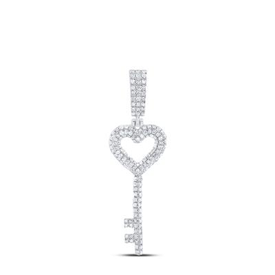 Sterling Silver Round Diamond Heart Key Pendant 0.63 Cttw