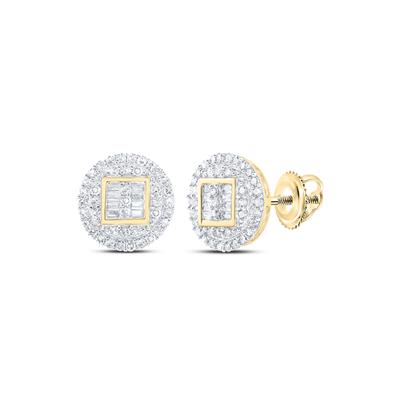 • 10K Yellow Gold Round Diamond Circle Cluster Earrings 0.50 Cttw
