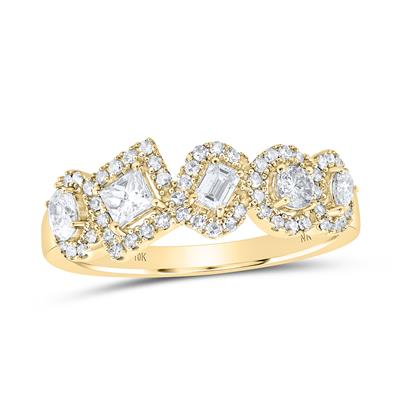 10K Yellow Gold Round Princess Pear Oval Diamond Nicoles Dream Collection Band Ring 0.75 Cttw
