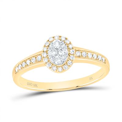 10K Yellow Gold Round Diamond Oval Cluster Ring 0.25 Cttw