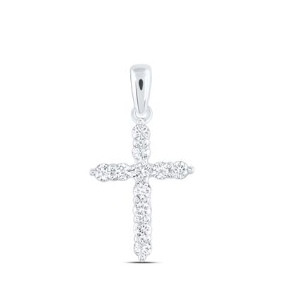 14K White Gold Natural Diamond Cross Pendant 0.25 Cttw