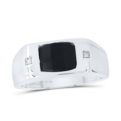 10K White Gold Natural Diamond 9x7mm Black Onyx Men's Ring 1.63 Cttw