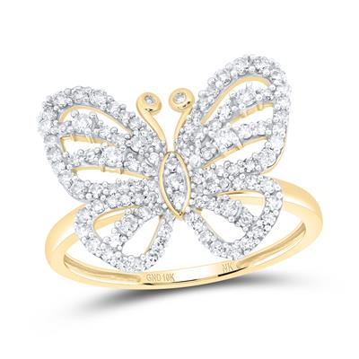 10K Yellow Gold Natural Diamond Butterfly Ring 0.50 Cttw