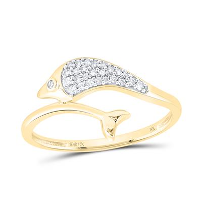 10K Yellow Gold Natural Diamond Dolphin Ring 0.10 Cttw