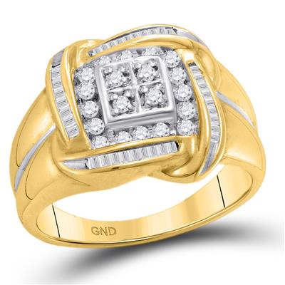 10K Yellow Gold Round Diamond Square Cluster Ring 0.50 Cttw