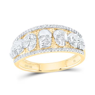 10K Yellow & White Gold Natural Diamond Skull Men's Band 0.25 Cttw