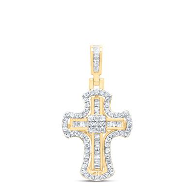 10K Yellow Gold Natural Diamond Cross Pendant 0.50 Cttw