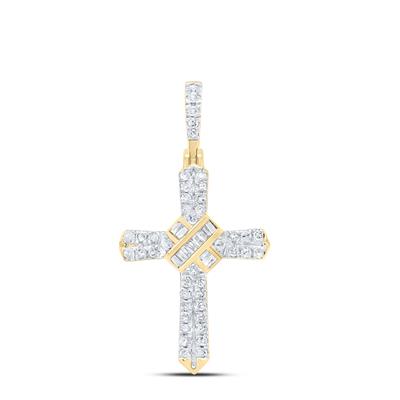 10K Yellow Gold Natural Diamond Cross Pendant 0.25 Cttw