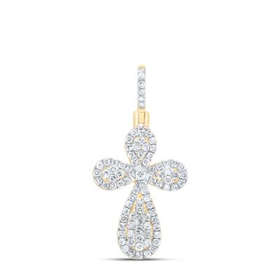 10K Yellow Gold Natural Diamond Cross Pendant 0.50 Cttw