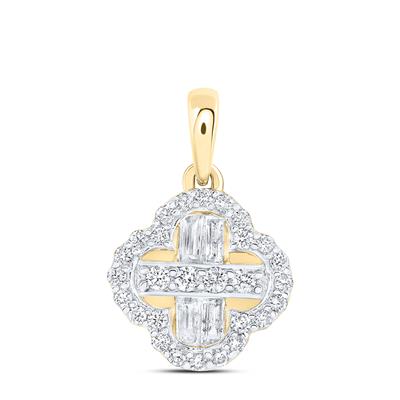 14K Yellow Gold Natural Diamond Clover Baguette Pendant 0.33 Cttw