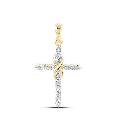 10K Yellow Gold Natural Diamond Cross Pendant 0.50 Cttw