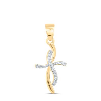 10K Yellow Gold Natural Diamond Cross Pendant 0.05 Cttw