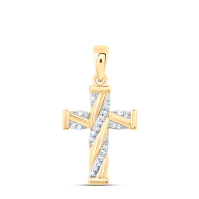 10K Yellow Gold Natural Diamond Cross Pendant 0.05 Cttw