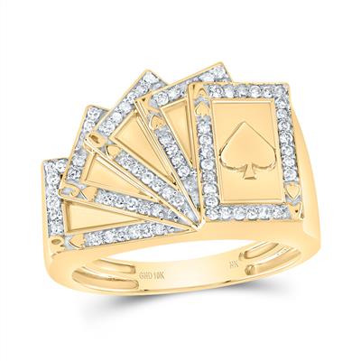 10K Yellow Gold Natural Diamond Cards Ring 0.33 Cttw