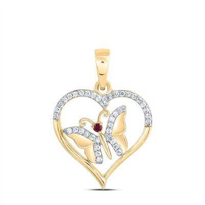 10K Yellow Gold Natural Diamond 1.3mm Round Ruby Butterfly Heart Pendant 0.10 Cttw