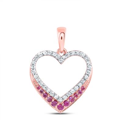 10K Rose Gold Natural Diamond Round Pink Sapp Heart Pendant 0.25 Cttw