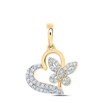 10K Yellow Gold Natural Diamond Butterfly Heart Pendant 0.13 Cttw