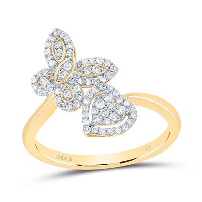 10K Yellow Gold Natural Diamond Butterfly Heart Ring 0.25 Cttw