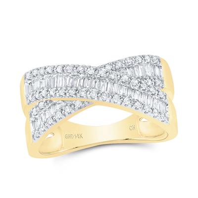 14K Yellow Gold Natural Diamond Criss Cross Ring 0.38 Cttw