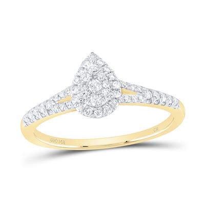 14K Yellow Gold Natural Diamond Pear Ring 0.38 Cttw