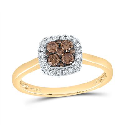 14K Yellow Gold Natural Diamond Cognac Cushion Ring 0.33 Cttw
