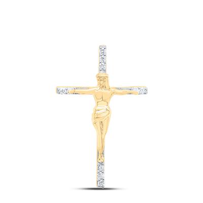 10K Yellow Gold Natural Diamond Jesus Cross Pendant 0.10 Cttw