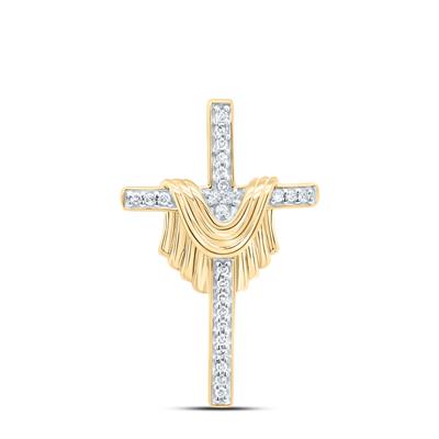 10K Yellow Gold Natural Diamond Cross Pendant 0.10 Cttw