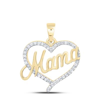 10K Yellow Gold Natural Diamond Mama Heart Pendant 0.14 Cttw