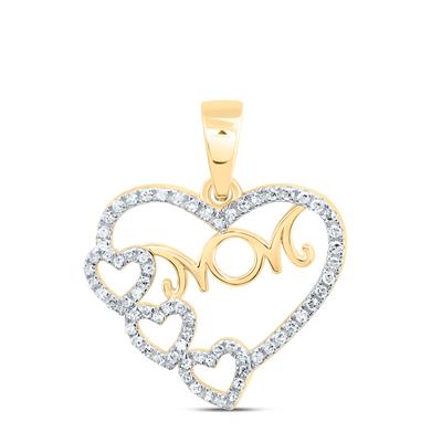 10K Yellow Gold Natural Diamond Mom Heart Pendant 0.14 Cttw