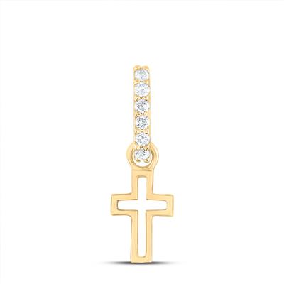 14K Yellow Gold Natural Diamond Cross Pendant 0.05 Cttw