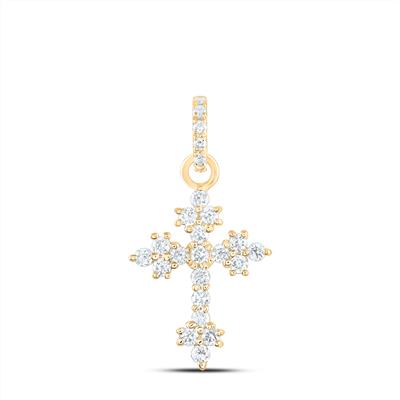 10K Yellow Gold Round Diamond Cross Pendant 0.25 Cttw