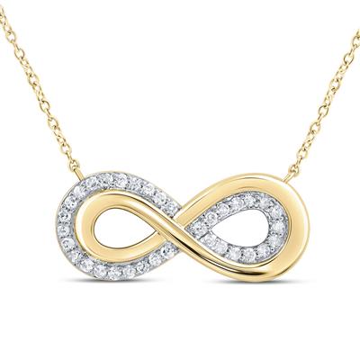 10K Yellow Gold Natural Diamond Infinity Necklace 18 Inch 0.13 Cttw