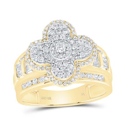10K Yellow Gold Natural Diamond Clover Ring 1 Cttw