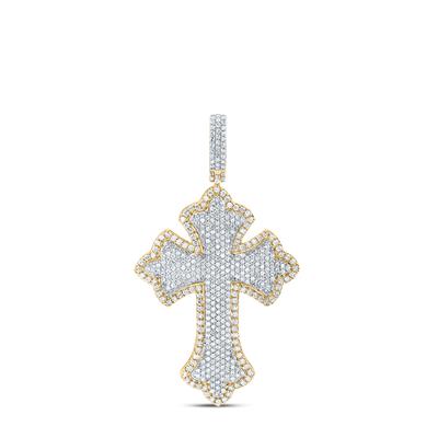 10K Yellow & White Gold Natural Diamond Cross Men's Charm 1 Cttw