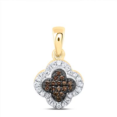 10K Yellow Gold Natural Diamond Cognac Diamond Clover Pendant 0.14 Cttw