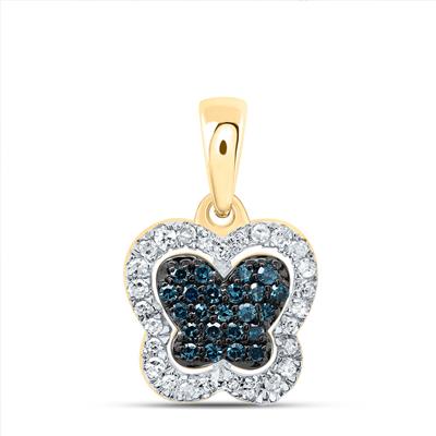 10K Yellow Gold Natural Diamond Blue Diamond Butterfly Pendant 0.20 Cttw