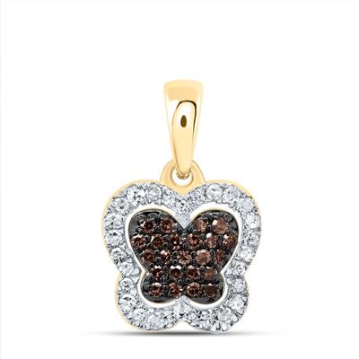 10K Yellow Gold Natural Diamond Cognac Diamond Butterfly Pendant 0.20 Cttw