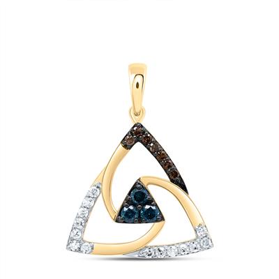 10K Yellow Gold Natural Diamond Cognac Blue Diamond Triangle Pendant 0.25 Cttw