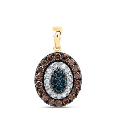 10K Yellow Gold Natural Diamond Cognac Blue Diamond Oval Pendant 0.63 Cttw