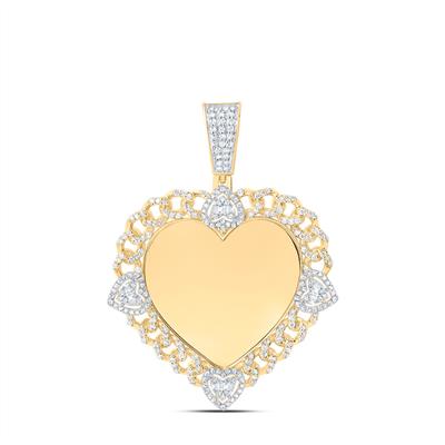 10K Yellow Gold Natural Diamond Memory Heart Men's Charm 1 Cttw