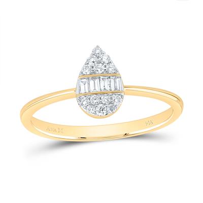 14K Yellow Gold Natural Diamond Pear Ring 0.20 Cttw