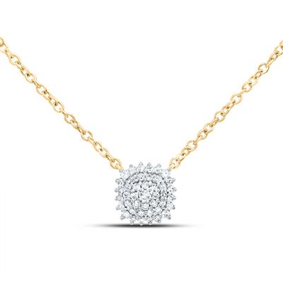 10K Yellow Gold Natural Diamond Cushion Necklace 18 Inch 0.14 Cttw