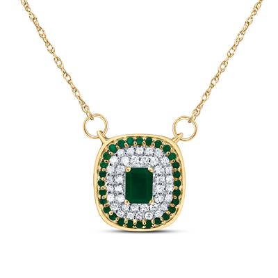 • 14K Yellow Gold Natural Diamond Round Emerald 4x3mm Emerald Cushion Necklace 18 Inch 0.38 Cttw