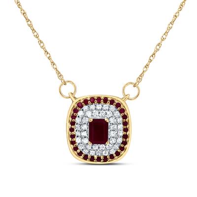 14K Yellow Gold Natural Diamond Round Ruby 4x3mm Emerald Ruby Cushion Necklace 18 Inch 0.50 Cttw