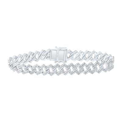 Sterling Silver Natural Diamond 10mm Cuban Bracelet 8 Inch 2 Cttw