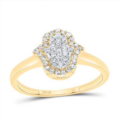 10K Yellow Gold Natural Diamond Hamsa Ring 0.20 Cttw