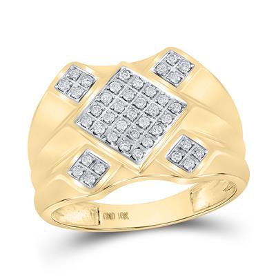 10K Yellow Gold Round Diamond Diagonal Square Cluster Ring 0.33 Cttw