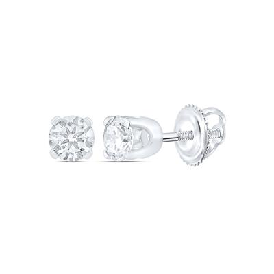 • 14K White Gold Unisex Round Diamond Solitaire Stud Earrings 0.38 Cttw (Certified)